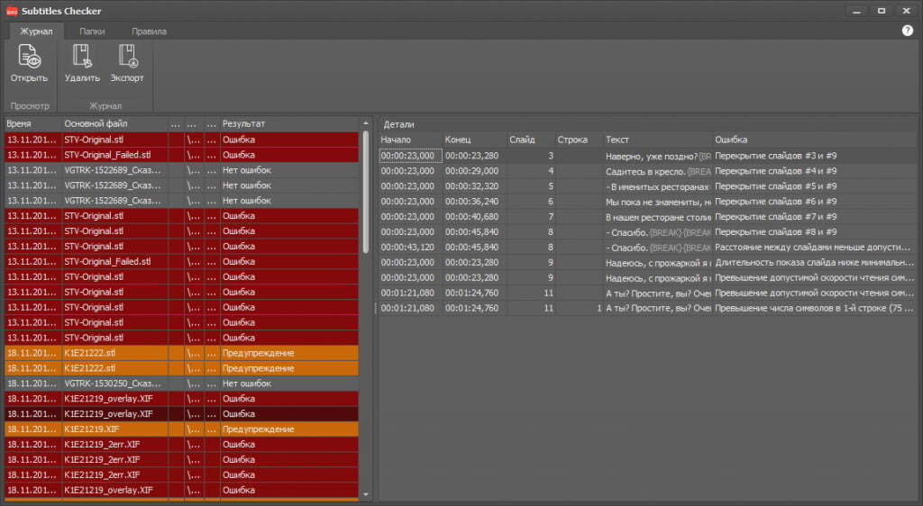 - Отображать среди нескольких тысяч субтитровых слайдов одного файла только те, которые содержат ошибки.