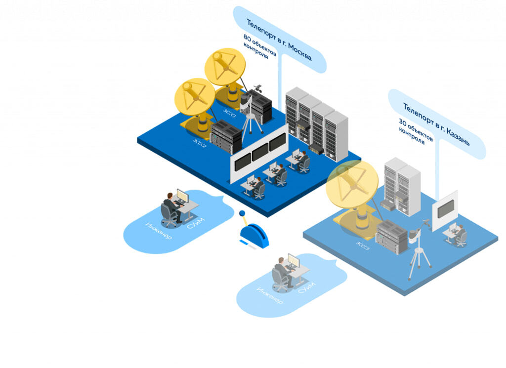 Резервный телепорт может выступать в качестве самостоятельной станции вещания, и при любой нештатной ситуации трансляция может быть переведена из Казани в Москву и наоборот. Данное переключение между основным и резервным телепортами осуществляется системой контроля оборудования ЦИСУСС «NB XT EM». Автоматизация процесса переключения позволяет минимизировать риски прерывания вещания при переключении с одной наземной станции на другую. При принятии решения о необходимости переключения, в частности, используются данные погодных станций, которые были установлены на основном и резервном телепортах в рамках второго этапа проекта, а контроль успешного переключения, дополнительно помогают осуществить данные анализаторов качества спутникового вещания в ключевых регионах.