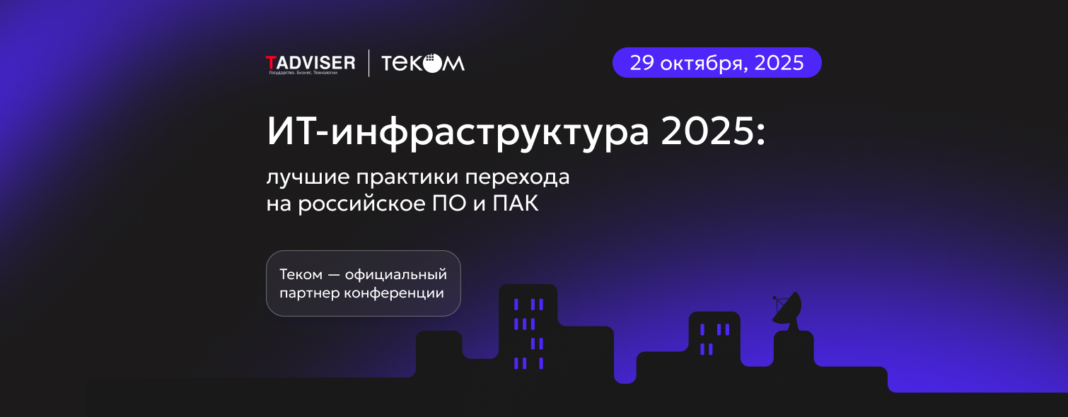 «Теком» примет участие в одной из ключевых ИТ-конференций года — TAdviser «ИТ-инфраструктура 2025: лучшие практики перехода на российское ПО и ПАК», которая пройдёт 29 октября 2025 года в Москве. Мероприятие станет важной площадкой для обсуждения современных подходов к построению, управлению и импортозамещению ИТ-инфраструктур в новых экономических реалиях.